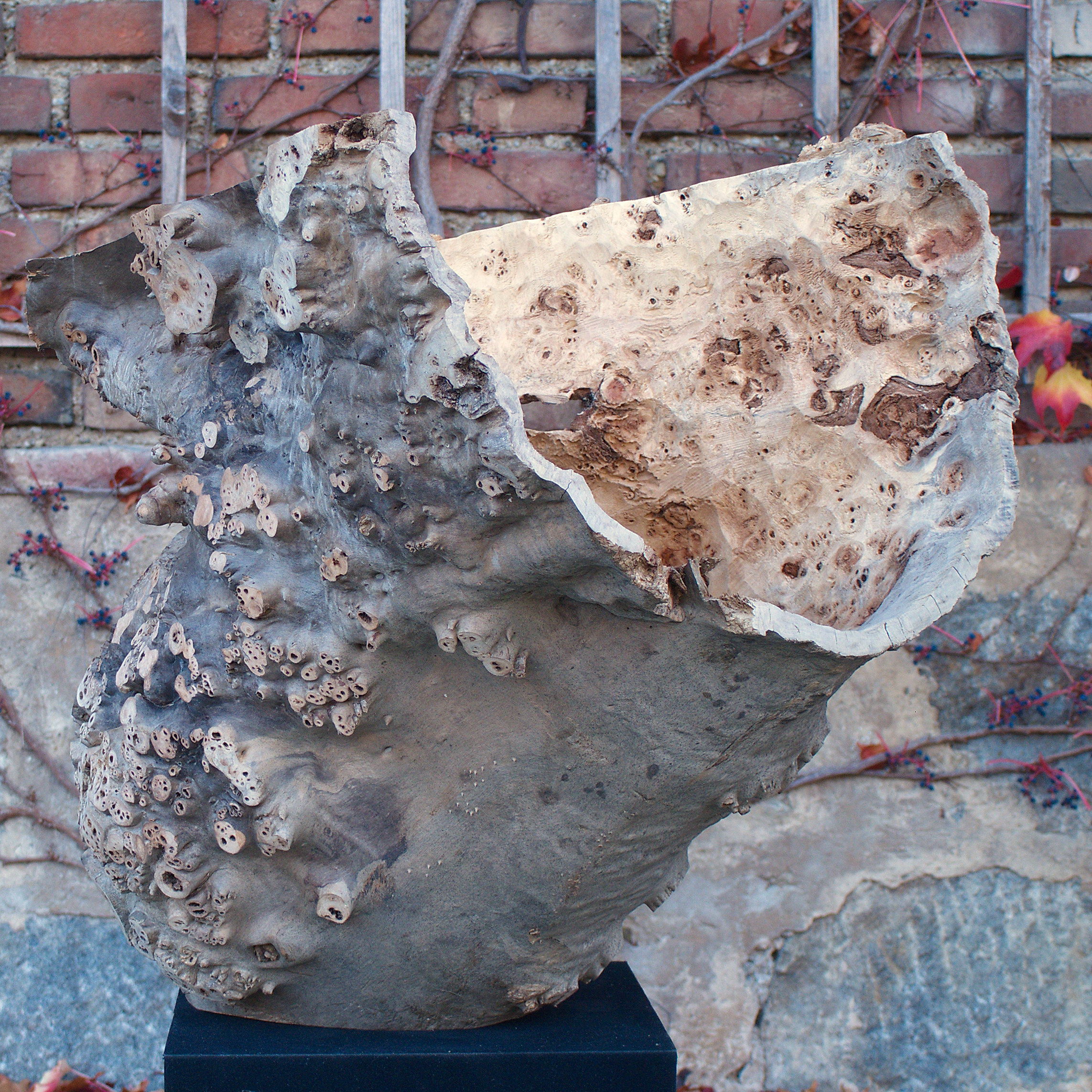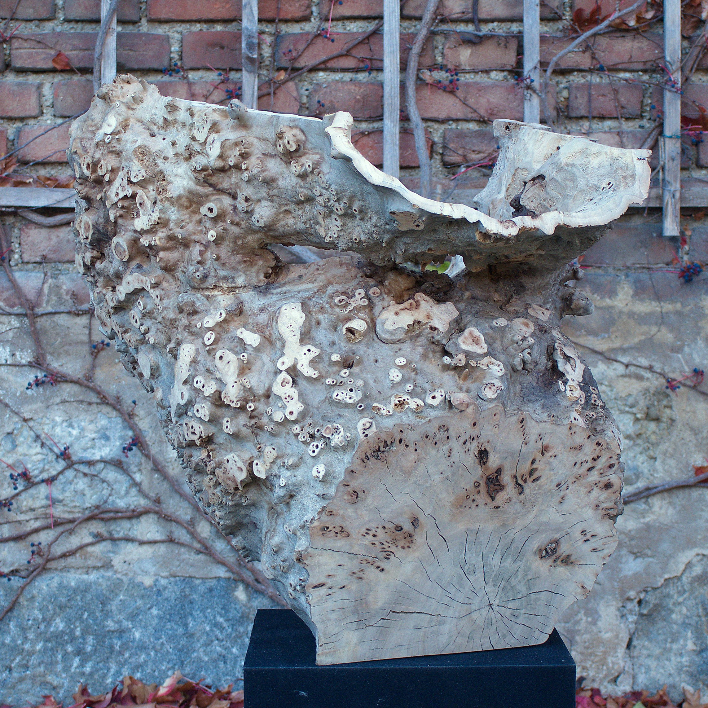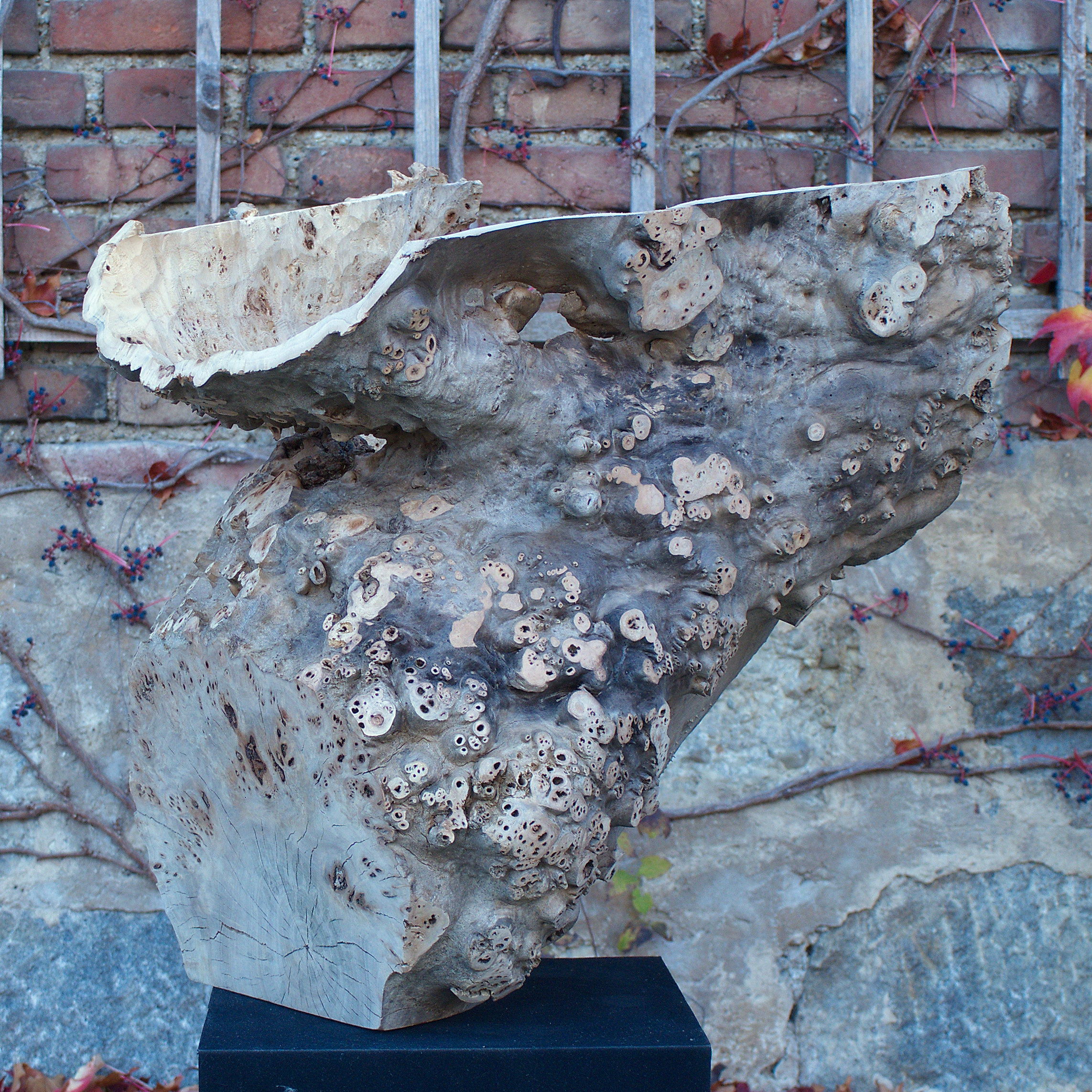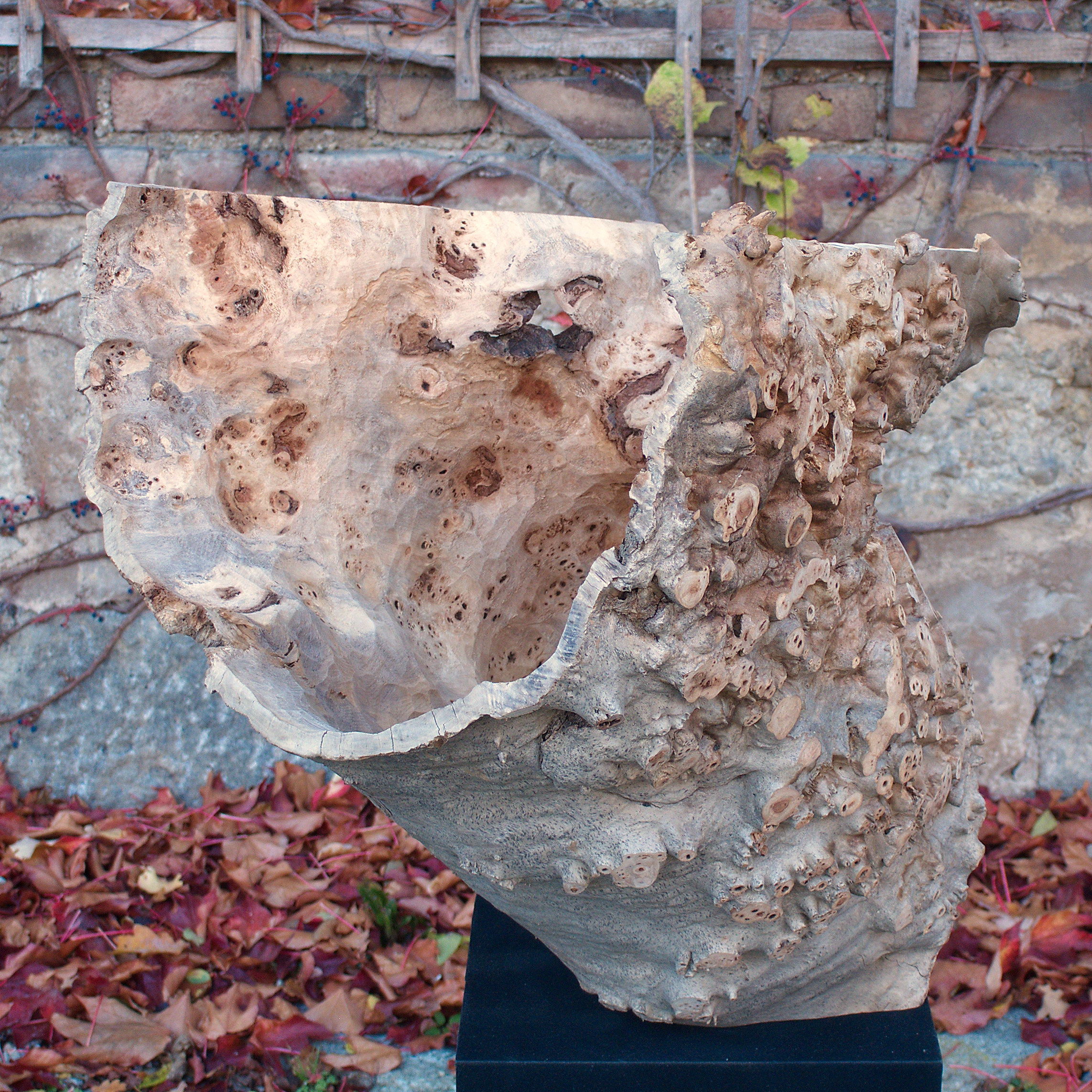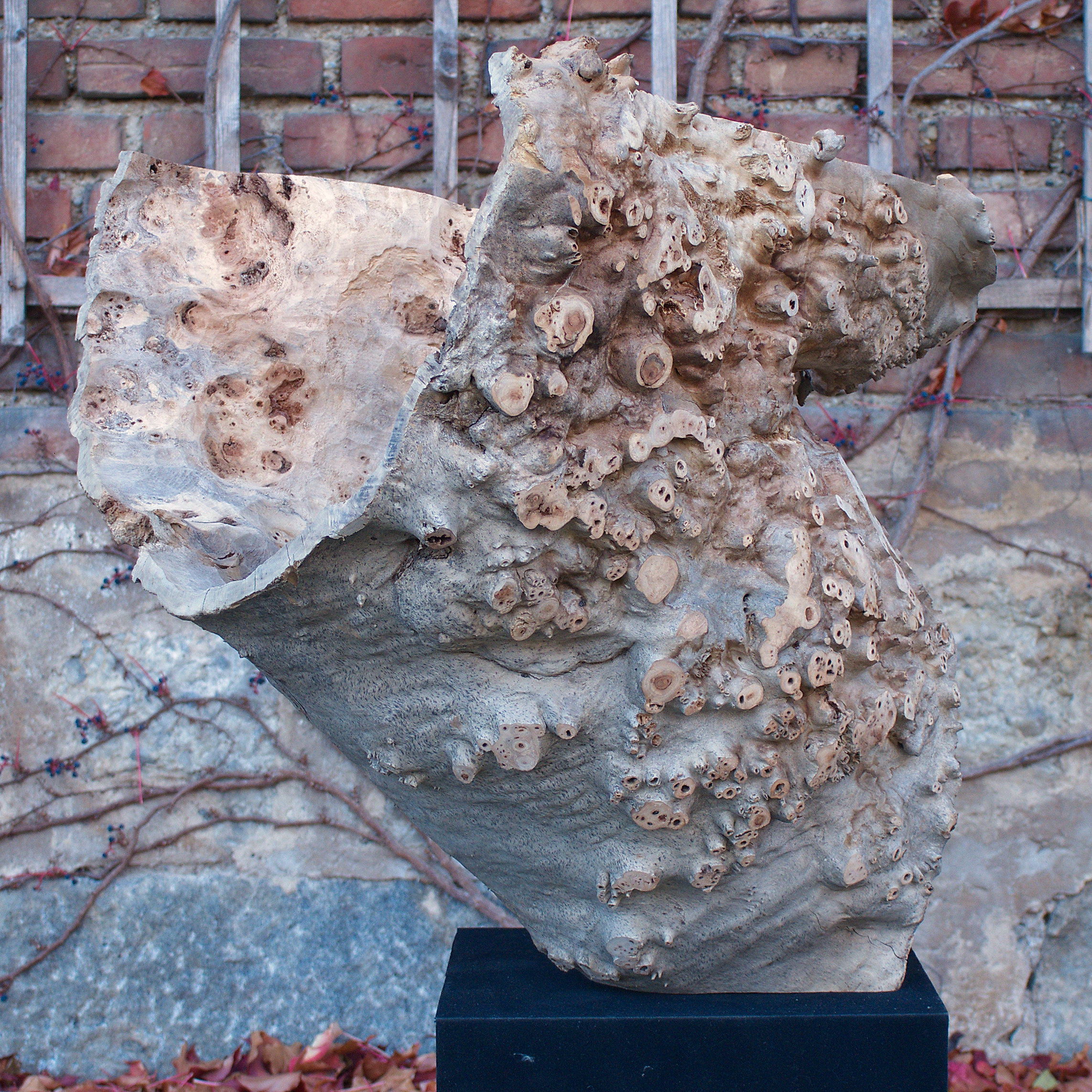 Aus dem Stammabschnitt eine Maser Pappel habe ich diese Form herausgearbeitet. Für mich ist sie wie ein Schrei, ein sich Öffnen. Das Holz ist unbehandelt. Die Maße: H 61 x B 60 x T 60 cm