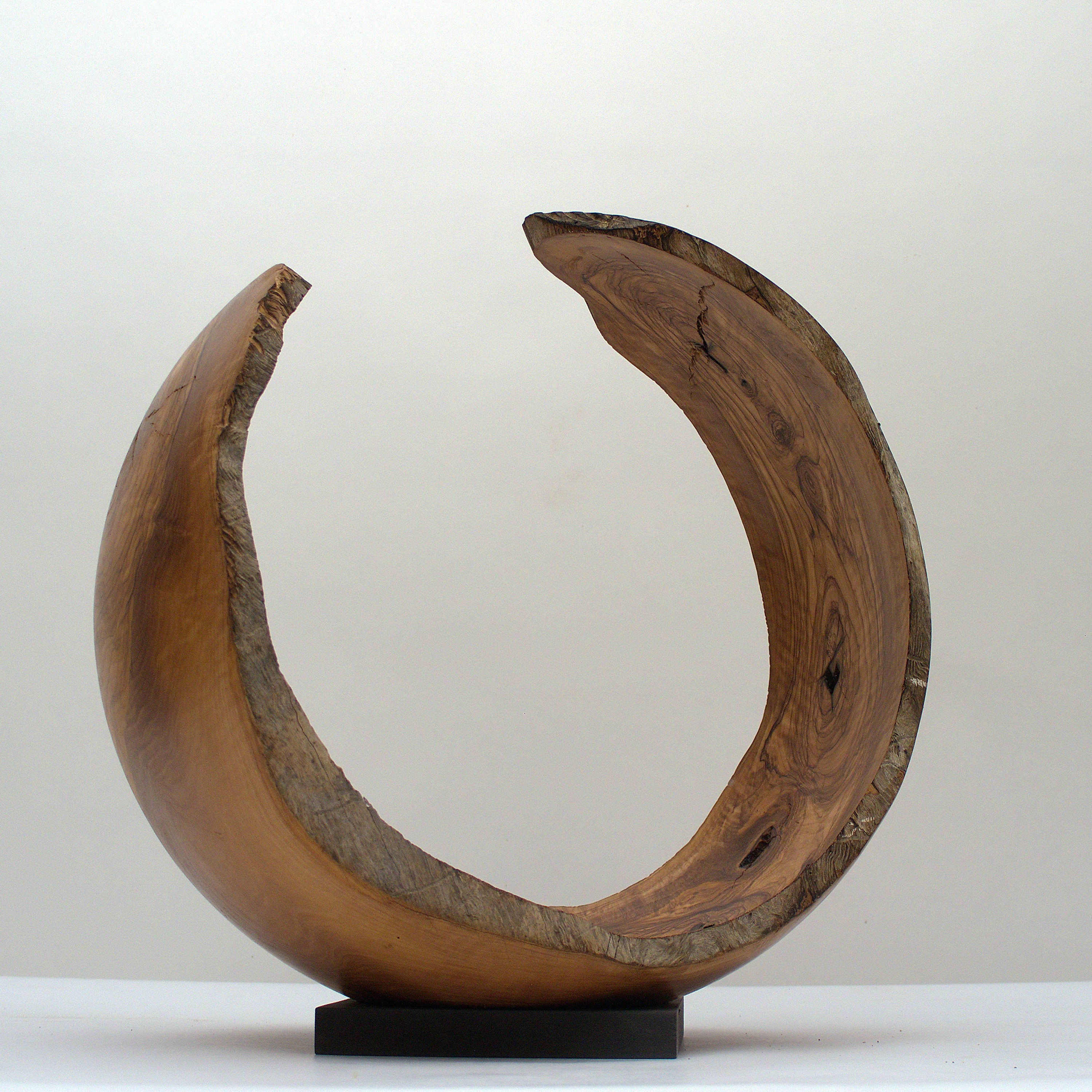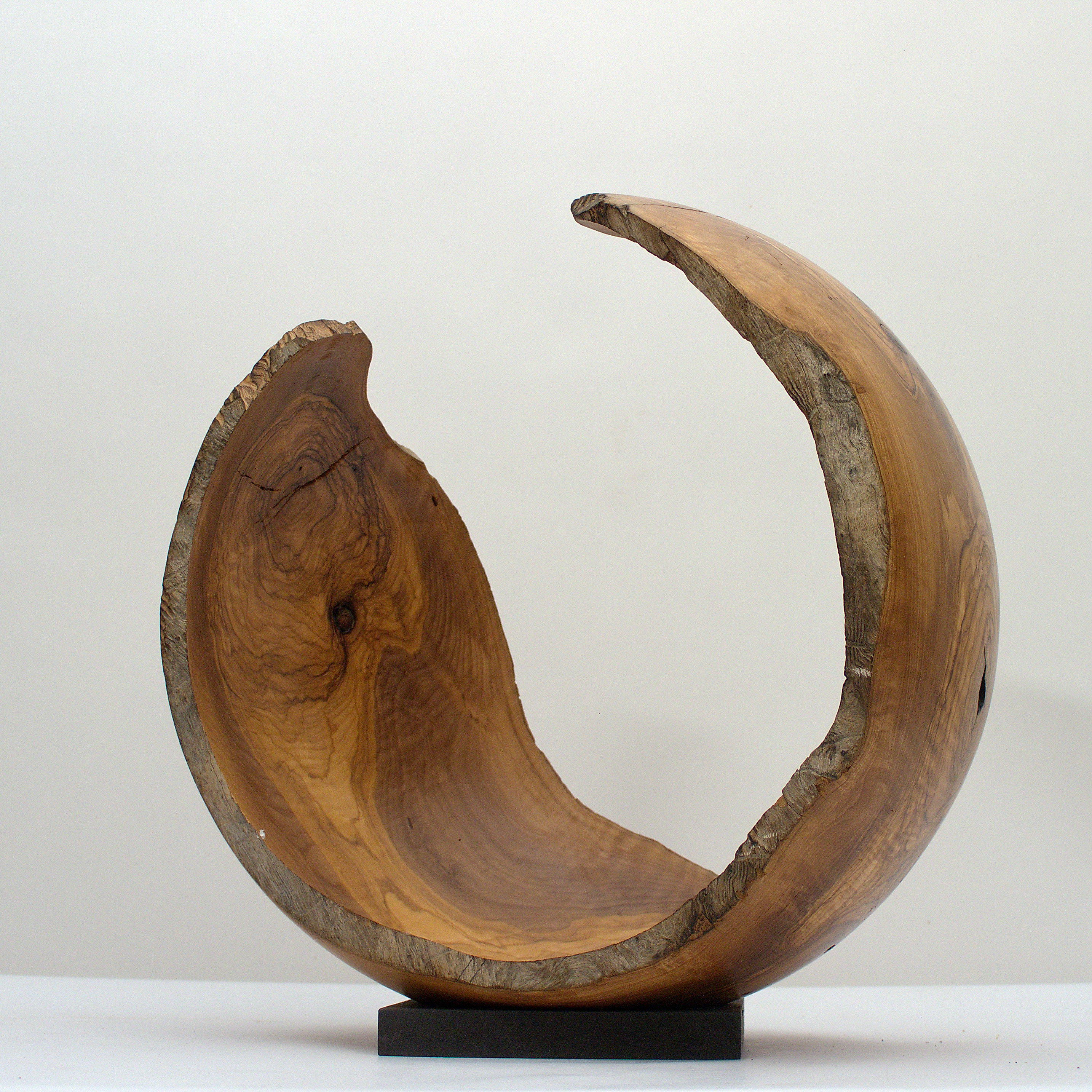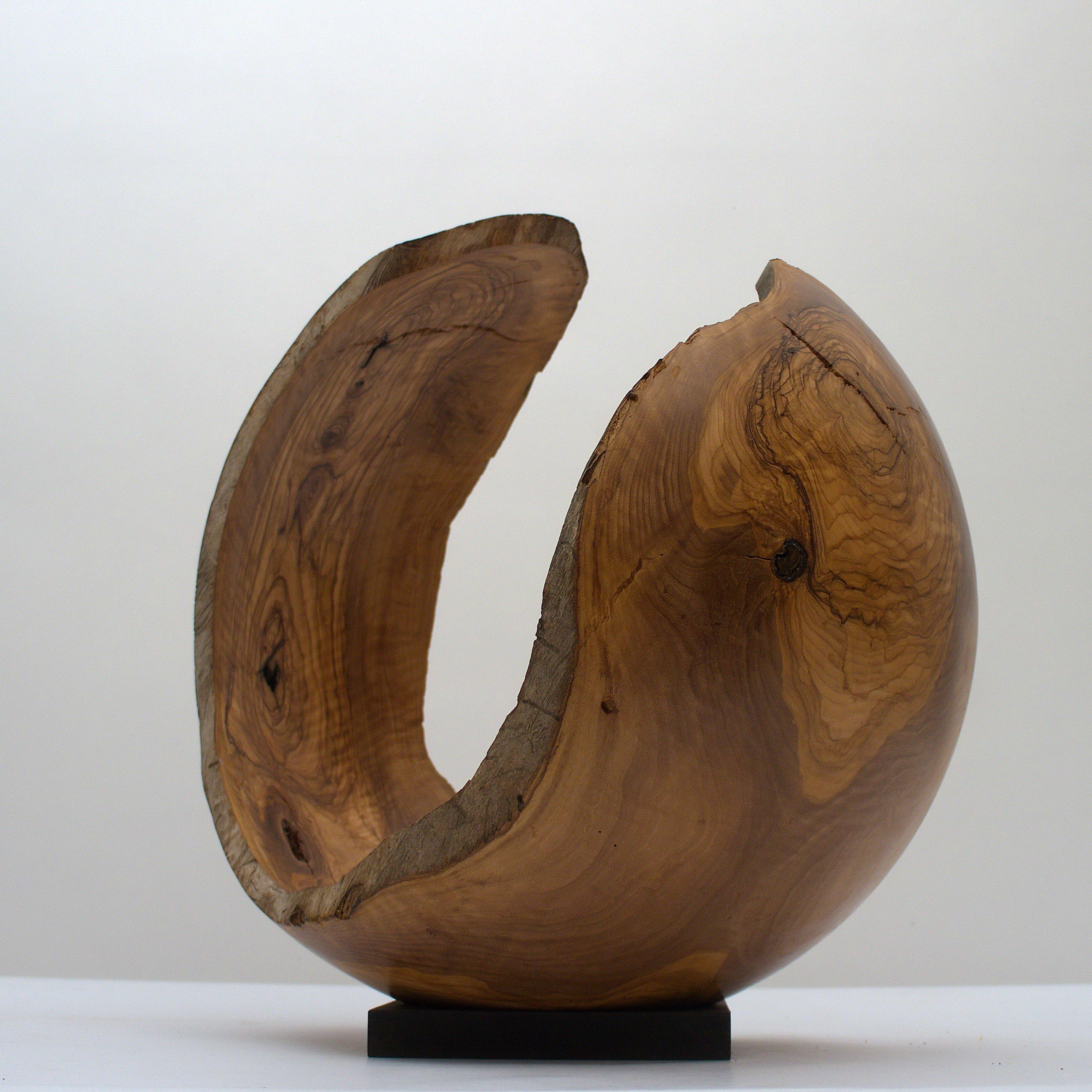 Dünnwandige, hohle Kugel aus Olivenholz, das ich aus Kreta bekomme. Das Objekt ist aus einem Stück gedrechselt, die Holzoberfläche geölt. Ein schönes Objekt.