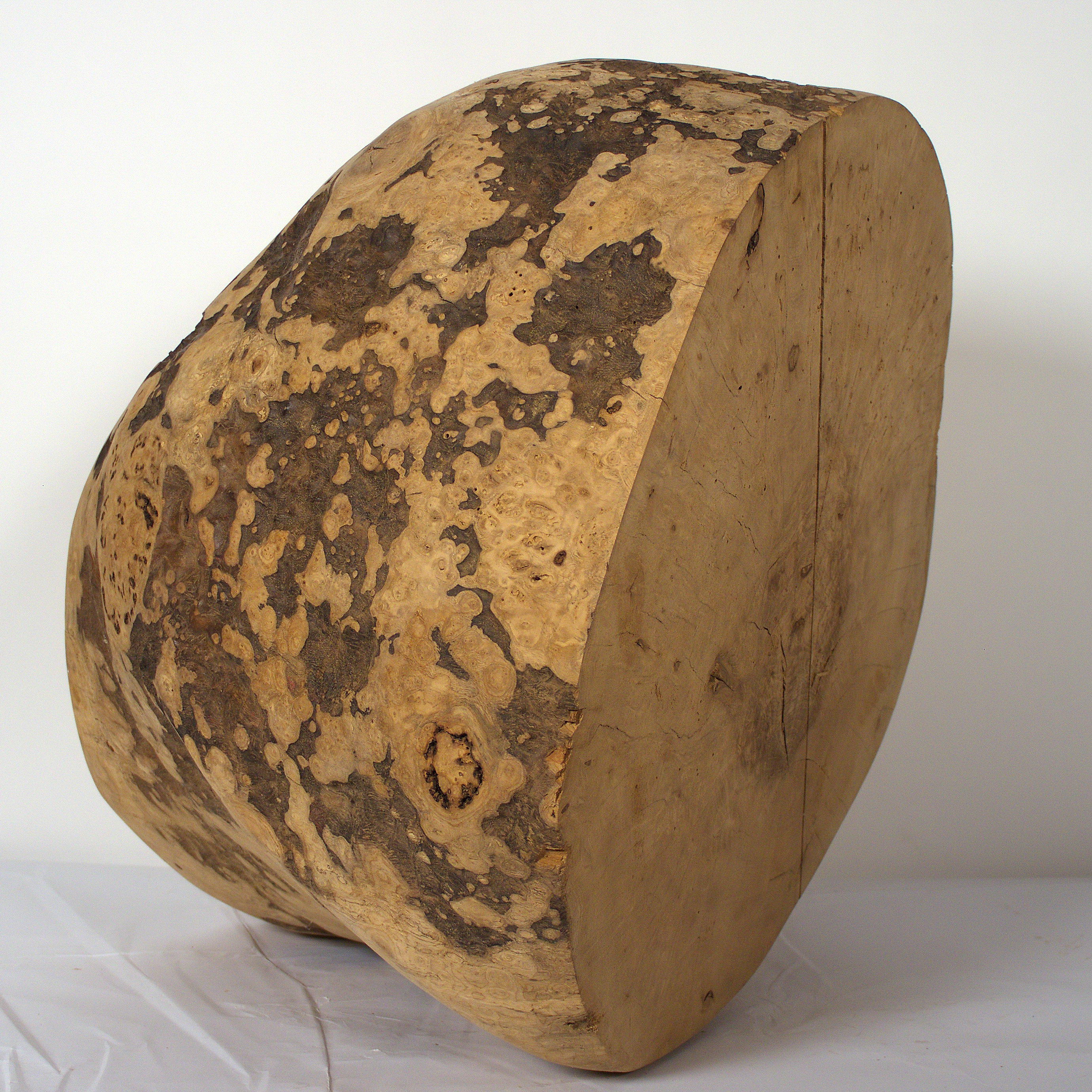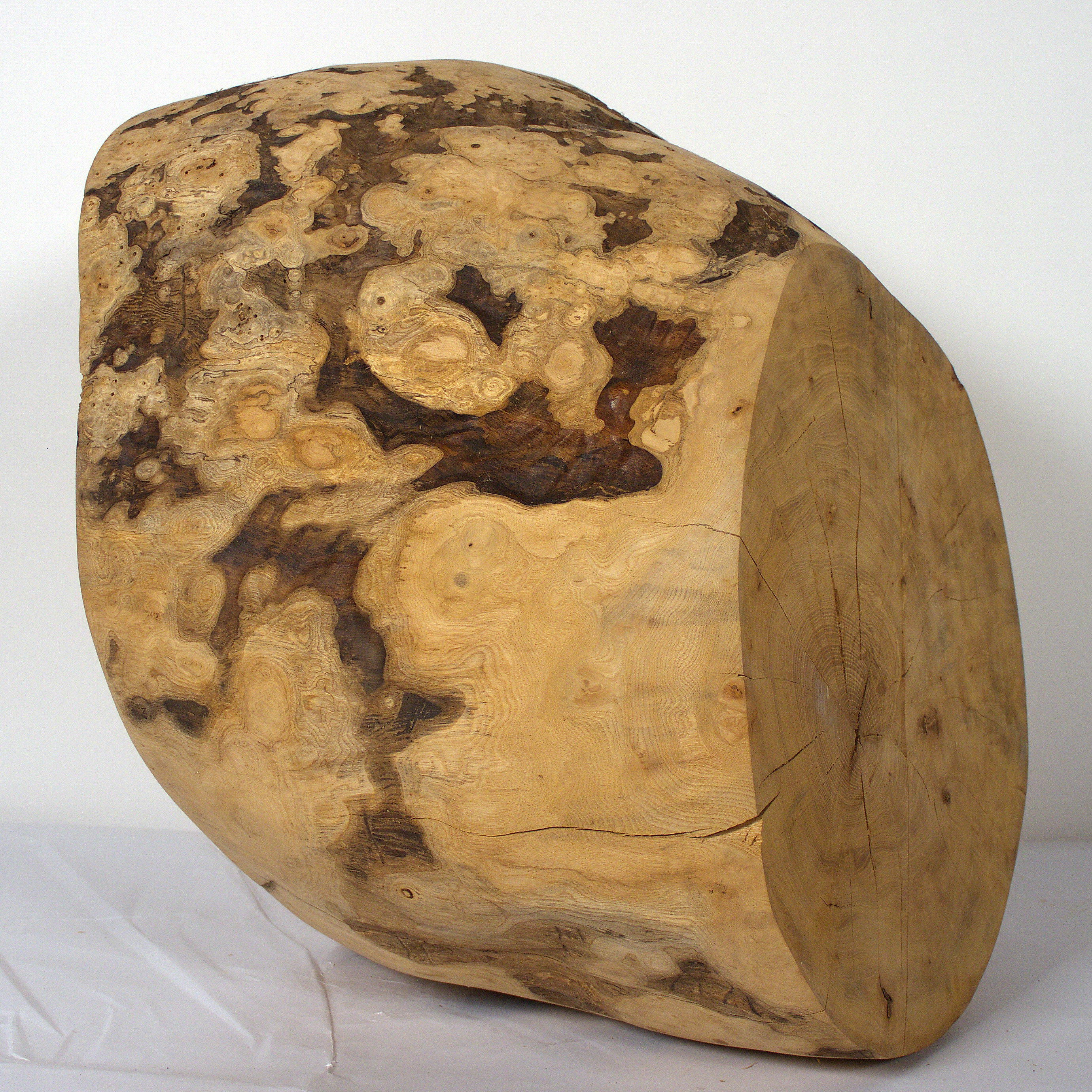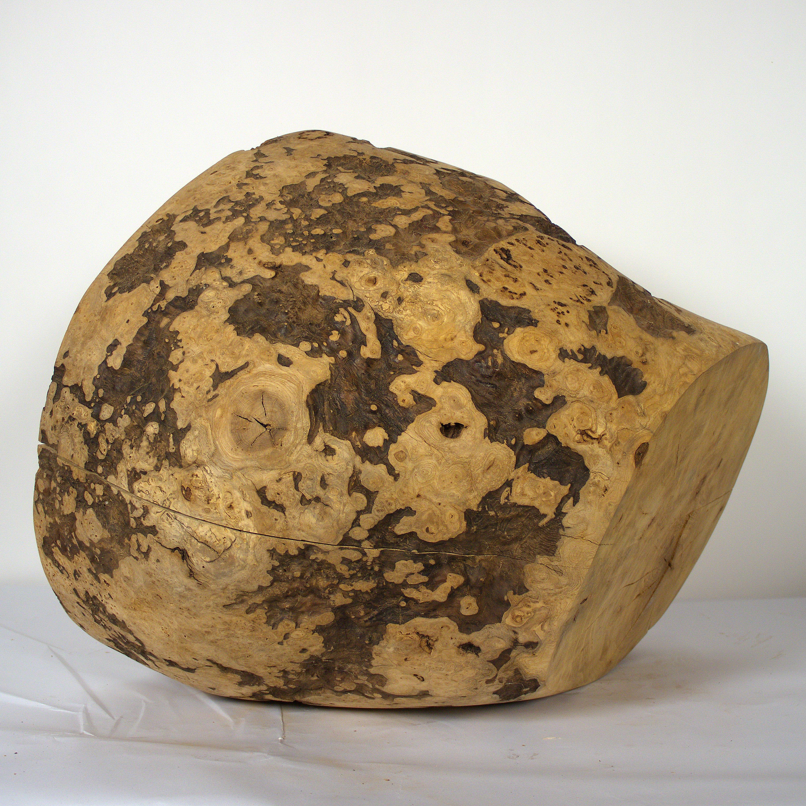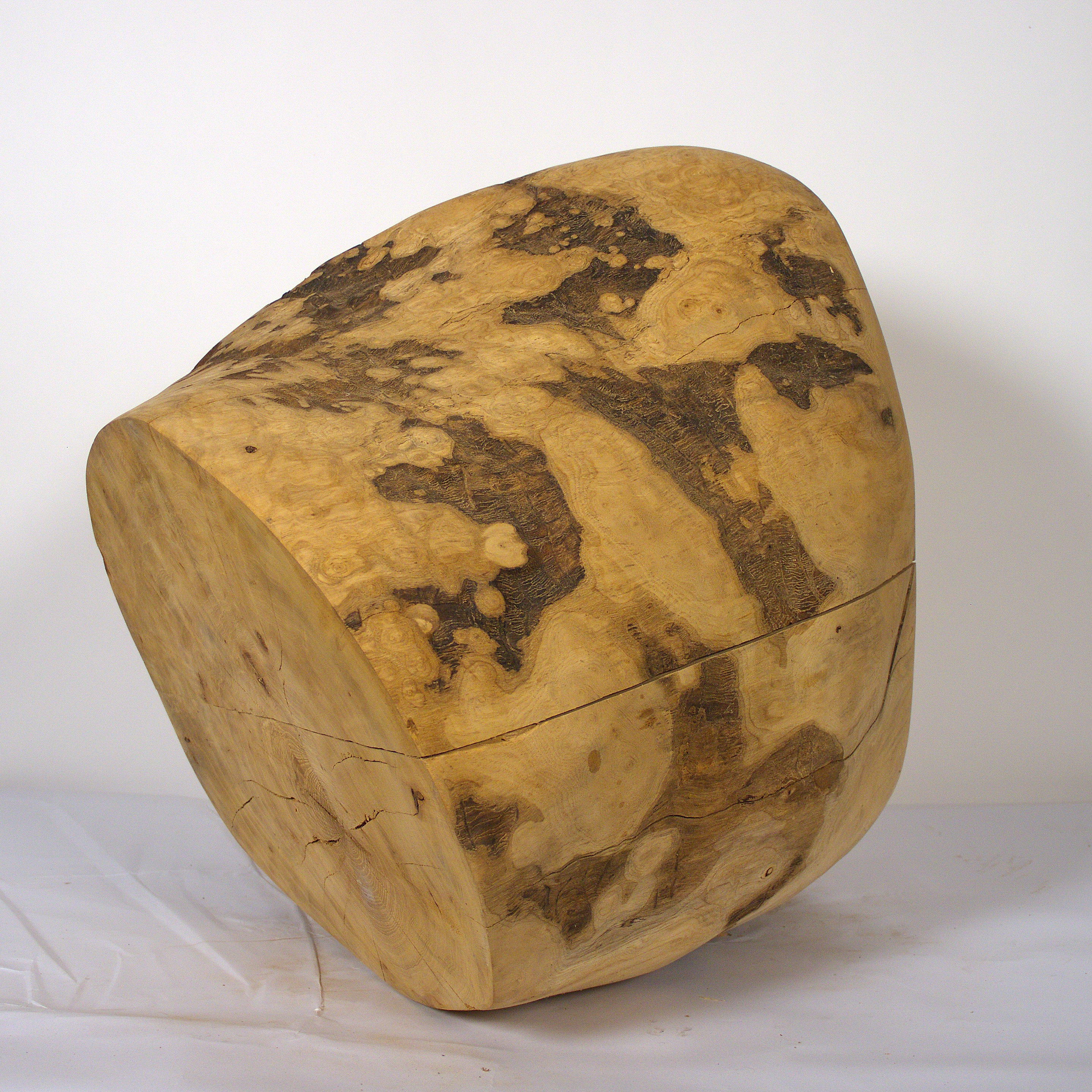 Aus der Knolle einer Eschen Maser habe ich diese hohle Form gearbeitet. Die Holzoberfläche ist gewachst. Sie kann zum Aufbewahren einer Urnenkapsel verwendet werden. Die Form ist für mich auch eine Skulptur, die zum Aufbewahren dienen kann. Die Maße: 53 x 47 x38 cm.