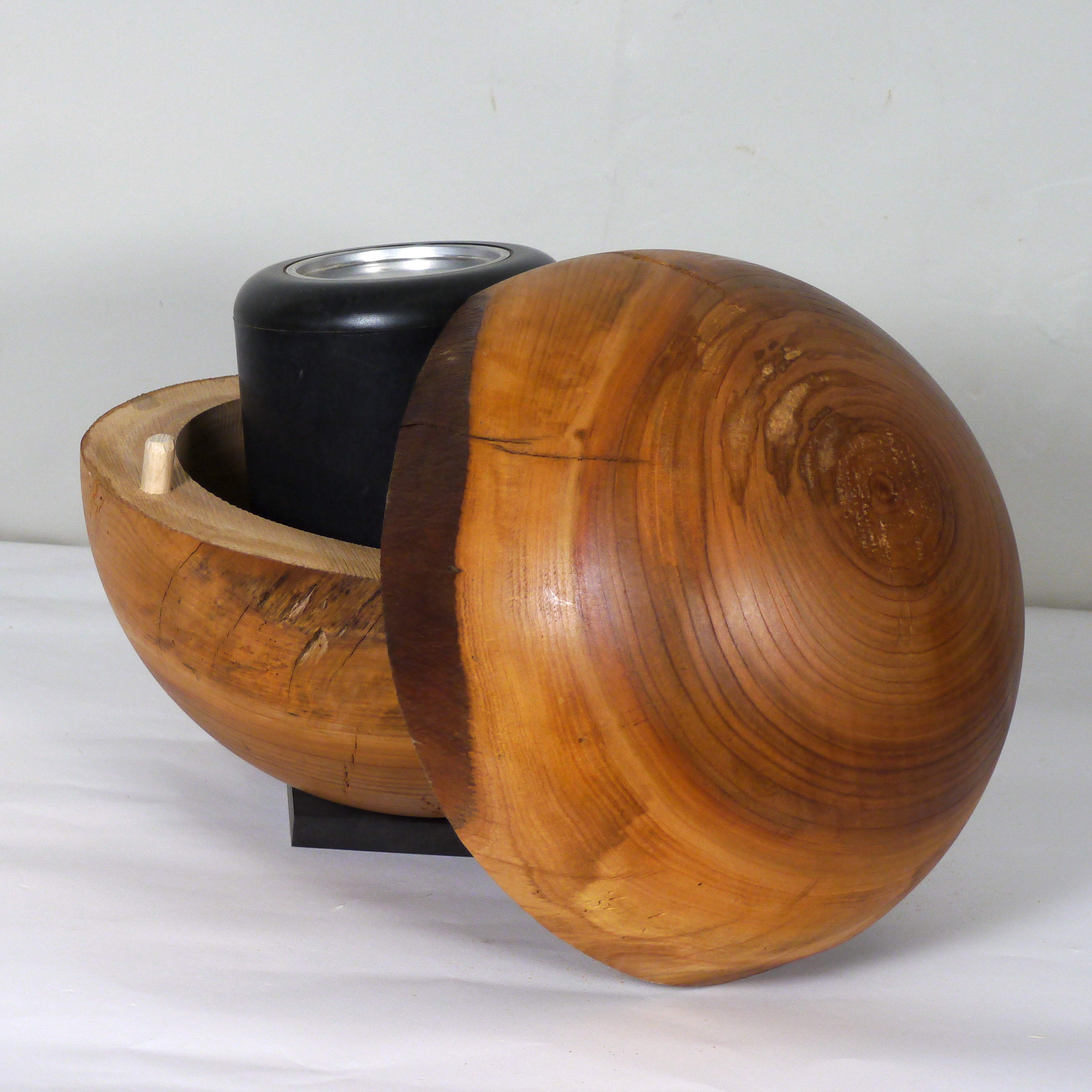 | Urnenkapsel: | Die Schmuckurnen höhle ich aus, damit eine Urnenkapsel in der Länge von 24 cm und einem Durchmesser von 17,5 cm hineingelegt werden kann. Wenn es der Platz erlaubt, sind die Aussparungen etwas größer, damit z.B. auch Platz für ein Stück Stoff ist. |