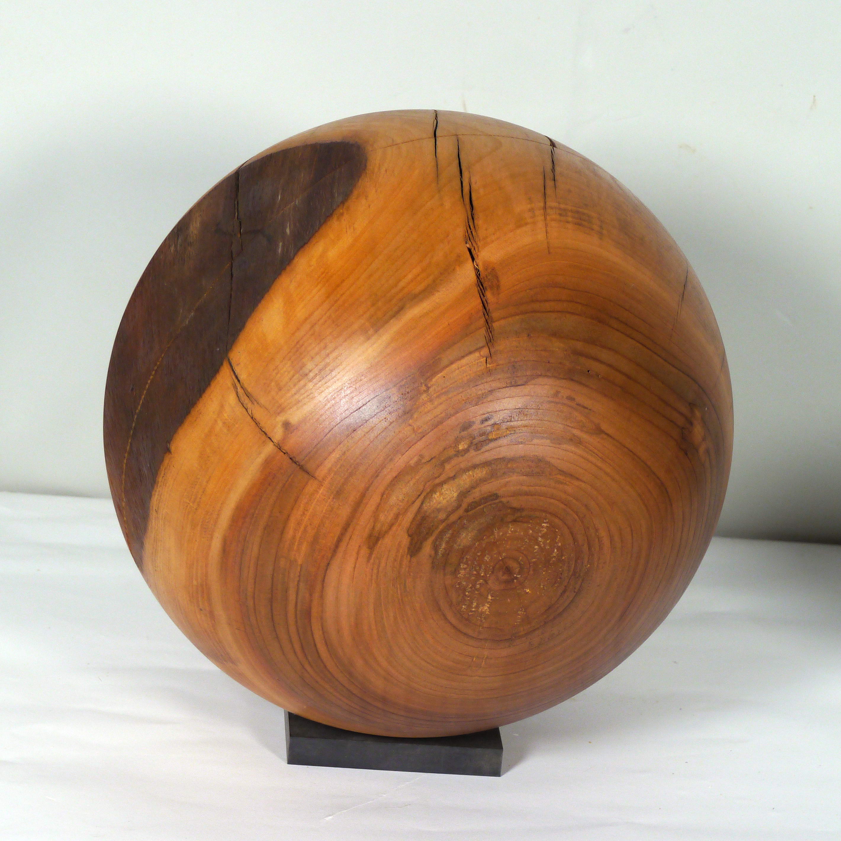 Schöne, lebendige Holzurne mit Rinde aus einheimischem Kirschbaum, die Holzoberfläche ist geölt.