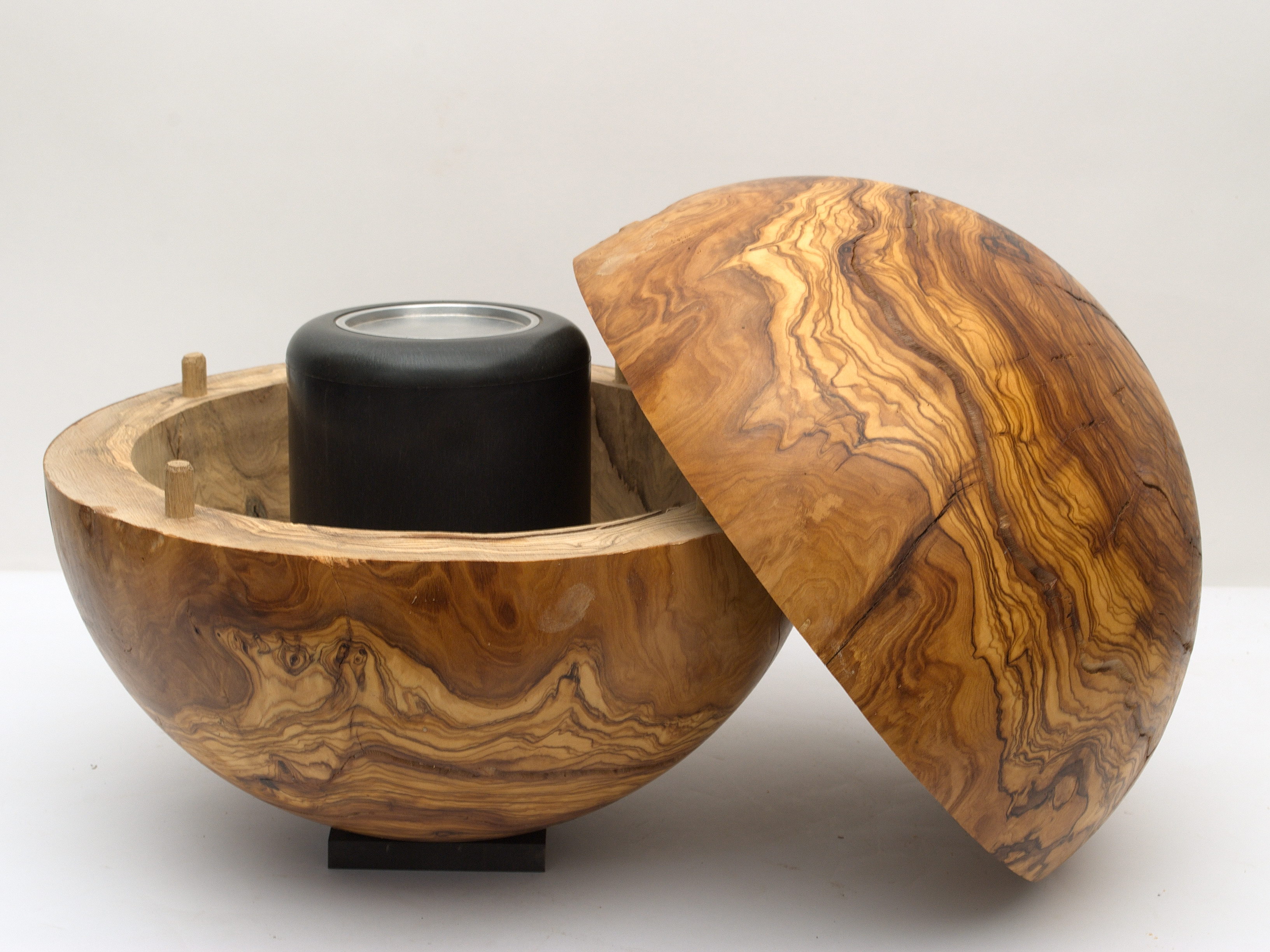 Sehr schöne, lebendige Holzurne aus Olivenholz aus Kreta, die ich in meiner Werkstatt... mehr