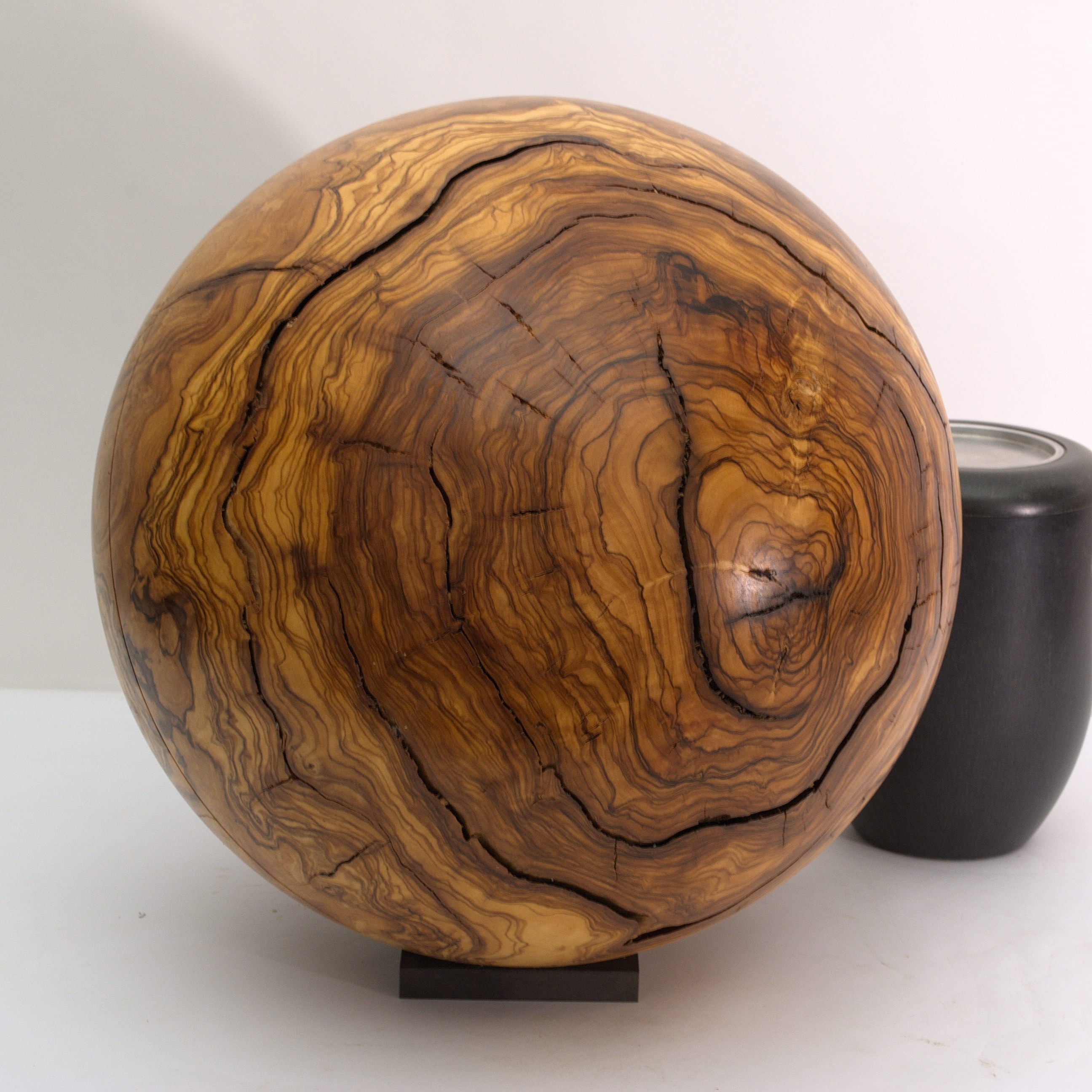 Sehr schöne, lebendige Holzurne aus Olivenholz aus Kreta, die ich in meiner Werkstatt gedrechselt habe. Die Holzoberfläche ist gewachst. Ich mag Formen, in denen der Baum spür- und sichtbar ist, Dies ist ein ganz besonderes Stück, eigentlich zu schade, um in die Erde gelassen zu werden.
