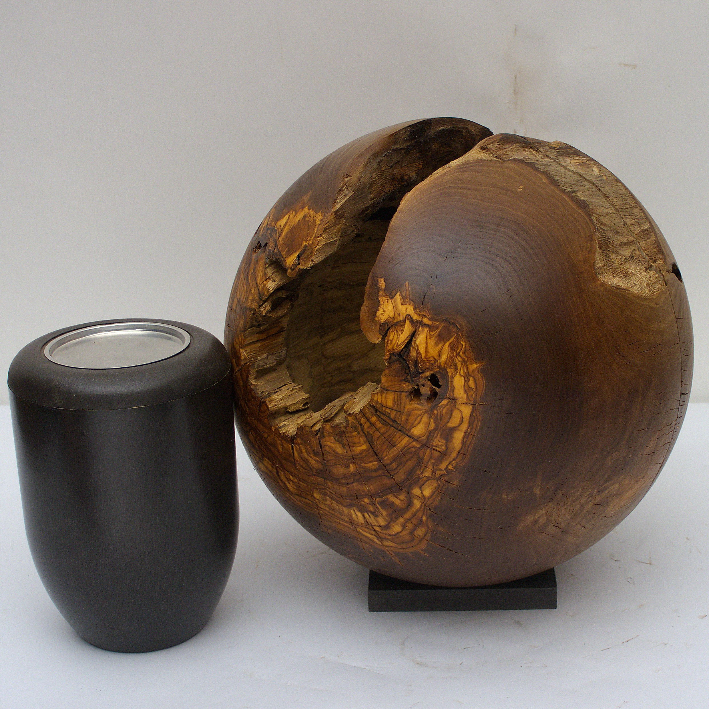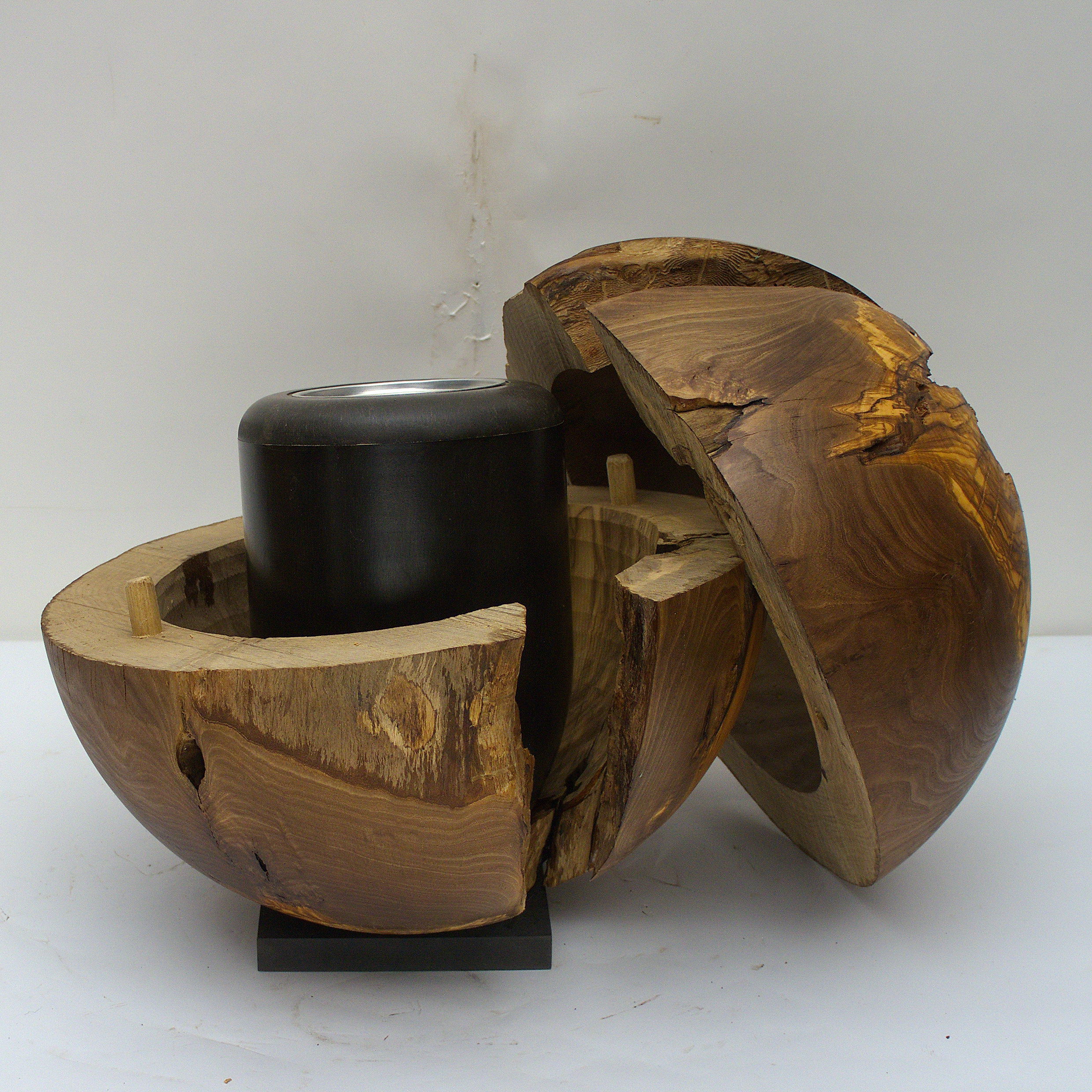 Aus einem sehr alten Olivenbaum, den ich aus Kreta bezogen habe, habe ich diese Holzurne gedrechselt, Die Holzoberfläche ist geölt.