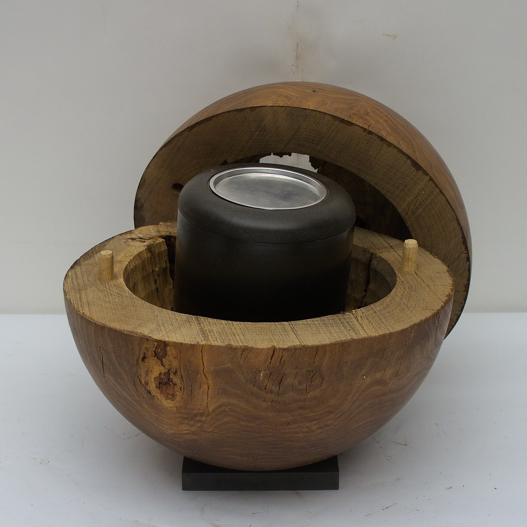 | Urnenkapsel: | Die Schmuckurnen höhle ich aus, damit eine Urnenkapsel in der Länge von 24 cm und einem Durchmesser von 17,5 cm hineingelegt werden kann. Wenn es der Platz erlaubt, sind die Aussparungen etwas größer, damit z.B. auch Platz für ein Stück Stoff ist. |
