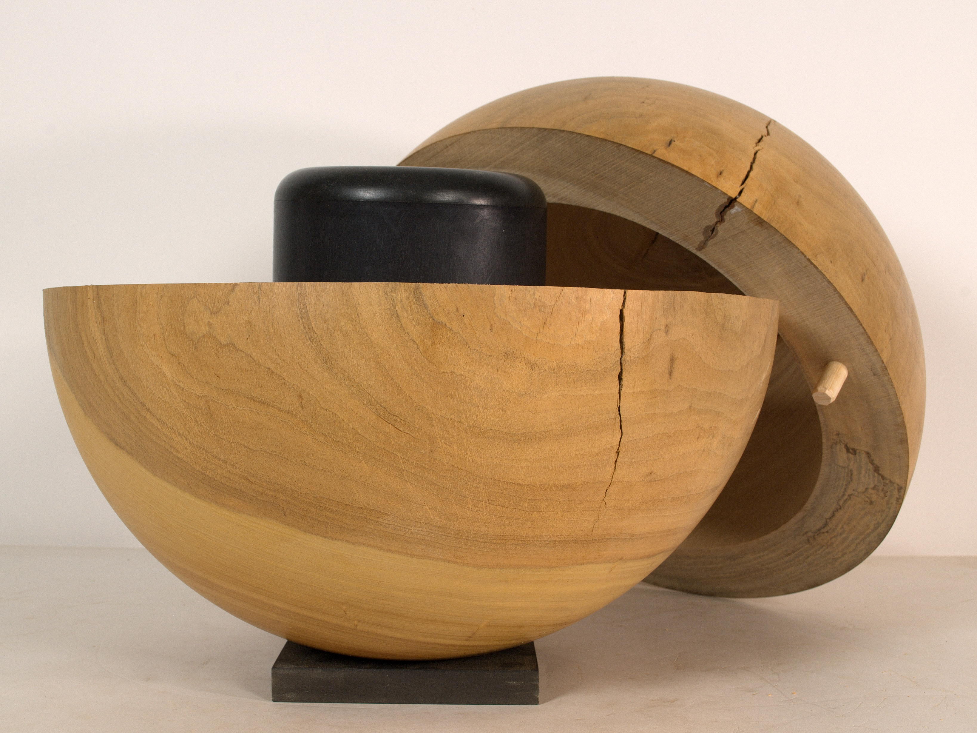 Zitronenholz, sonst auch unter dem Namen Satin-Holz bekannt, kommt aus Burma. Vor gut 2 Jahrzehnten habe ich einige Stücke von diesem seltenen und äusserst schönen Holz bekommen. Es ist unglaublich dicht, auch schwer, aber es hat diesen eindrucksvollen gelben, schimmernden Ausdruck. Das Stück besteht aus dem goldgelben Kernholz und darüber dem etwas gefärbten Splintholz. Ich habe es aufgetrennt und ausgehöhlt, damit eine Urne darin gut Platz hat. Vielleicht findet dieses schöne Stück, trotz seiner Größe, seinen Platz.